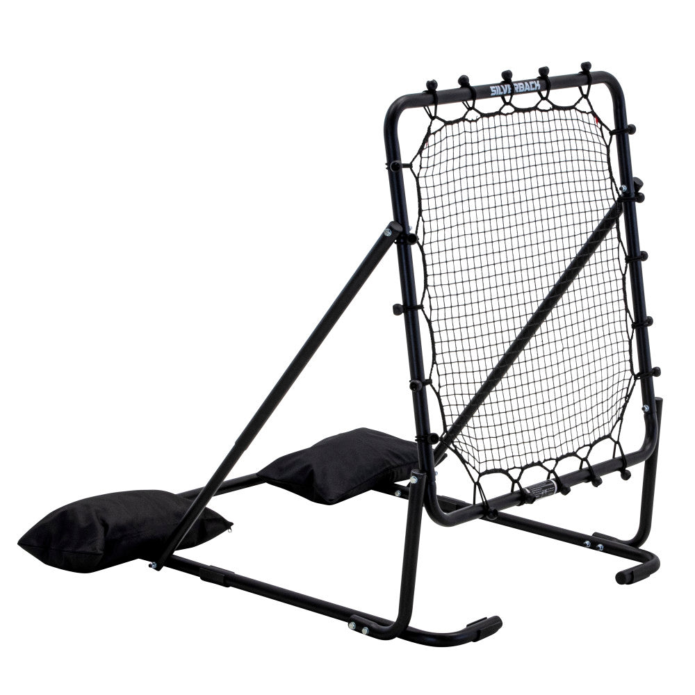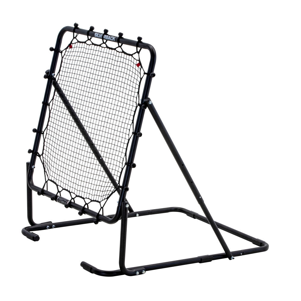 The Silverback Multi-Sport Ball Rebounder Net is perfect for improving skills like fielding ground balls or stimulating pop flies with a baseball or softball, along with strengthening lacrosse shooting, passing, and catching skills. Work the net by passing the basketball to yourself, catching the quick return, and stepping into game-speed shots to sharpen your passing, footwork, and scoring touch. Offering even more efficiency, practice using soccer balls, footballs, and volleyballs too. It can easily be moved from any location at any time for practice anywhere, anytime, and can be stored in most compact spaces when not in use. The rebounding net is great for solo athletes looking to practice their individual skills and can be set up anywhere or against portable basketball hoops. The rebounder's sturdy construction allows for competitive use for years. Dimensions: Tallest height: 46.5”, Length: 45.5”, Width: 39” and can be adjusted to angles of 50, 65, and 80 degrees; it is compatible with Silverback NXT54 and NXT50 Portable Basketball Hoops. Take your game to the next level with Silverback!